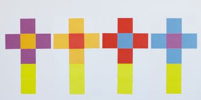 คุณสามารถใช้ โพสต์-อิท® โน้ต ทรงสี่เหลี่ยมจัตุรัสซึ่งประดิษฐ์ดอกไม้รูปทรงต่างๆ แต่รูปทรงที่เราชอบคือดอกไม้ 4 กลีบ นอกจากนี้ คุณยังสามารถสร้างแบบแผนดีๆ ได้จากรูปทรงดอกไม้นี้