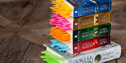 "เมื่ออ่านเล่มแรกไปได้ครึ่งเล่ม ผมก็เริ่มรู้สึกว่ามีคนตายเยอะมาก และผมอยากจะรู้ว่าจริงๆ แล้วมันมากแค่ไหนกันแน่ ด้งนั้น ผมจึงไปซื้อ โพสต์-อิท® เพจ มาร์กเกอร์ มาและเริ่มแปะลงไปเรื่อยๆ ขณะที่อ่านหนังสือ”